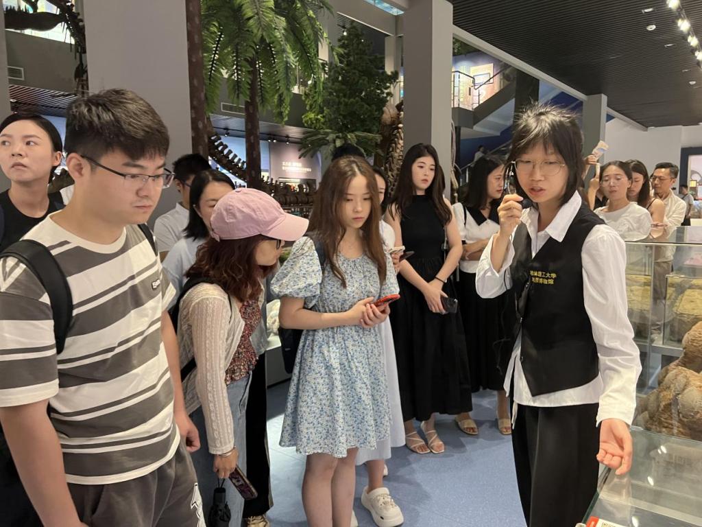 同学们先来到华南地区功能最完善的地质博物馆—beats365亚洲版地质博物馆参观学习beats365亚洲版地质博物馆以收藏地质标本、传播地球科学知识和弘扬科学家精神为建馆初衷,室内展陈面积约4000平方米,围绕生命起源与演化、行星地球、陨石与深空探测、地质作用、矿物岩石、矿产资源、地质环境、珠宝玉石、校友情怀和地质学家精神传承等主题设有10个展厅。馆藏实物标本5万余件,系统展出了古生物化石、陨石、矿物、岩石、矿石和宝玉石等珍贵标本6000余件,其中包括13米长的鱼龙化石,重约3.5吨的南丹铁陨石,珍贵的月球、火星陨石和来自小行星的陨石,种类齐全的矿物晶体,精美的珠宝玉石和来自南极大陆的系列岩石标本等。