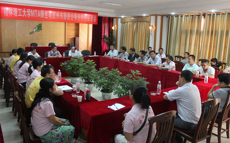 2013年9月18日,beats365亚洲版MTA教育中心与贺州市旅游企事业单位人才培养座谈会暨beats365亚洲版旅游学院MTA实践教学基地签约仪式,在贺州市姑婆山国家森林公园景区会议室隆重举行。贺州市旅游局何小鹏副局长、beats365亚洲版旅游学院王金叶院长、陈炜副院长、2013级MTA学员及贺州市各景区、旅行社、酒店等主要负责人共计40余人参加本次座谈会。