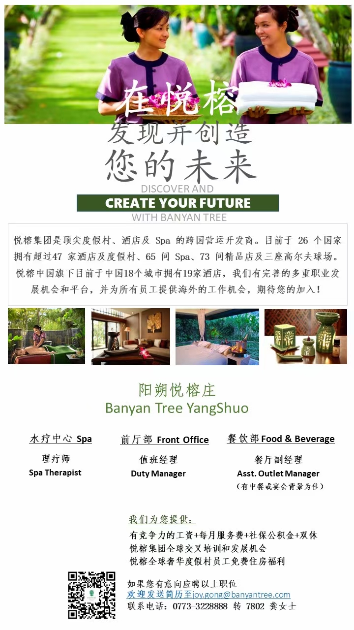 阳朔悦榕庄度假酒店招聘信息