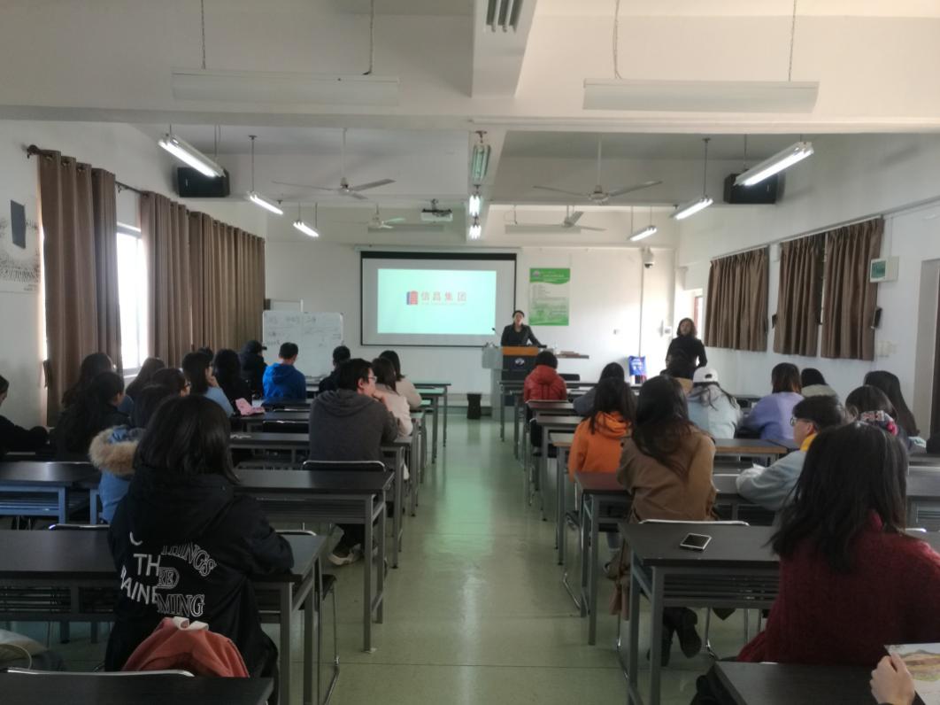 2019年12月6日上午,桂林信昌集团人力资源总监于艳华、招聘和培训负责人周欣一行来到beats365亚洲版04618教室开展2020年校园招聘会,宣讲会中周欣经理通过对桂林信昌集团和大碧头旅游度假区的总体情况介绍,突出了度假区的特色亮点,并对产品定位、发展前景和薪酬福利等方面进行了具体介绍,也针对岗位需求、招聘条件进行讲解。在宣讲过程中,各毕业生认真听讲,就自己感兴趣的岗位进行了提问交流。宣讲结束后,共有十多名学生有意向和投递简历。