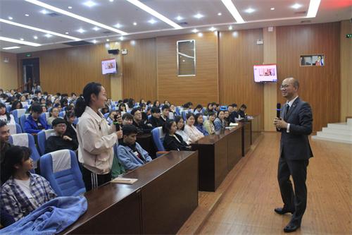 讲座上,孔总监从商业环境、未来工作雇佣关系和酒店行业的当下与未来这三个方面进行阐述。孔总监认为“酒店行业是一个危机与机会并存的行业,需要以未来的思路来解决当下的挑战,而不是以过去的思维来解决目前的挑战。”接着,孔总监通过互动来帮助同学们更深刻地了解酒店行业。最后,孔总监用一句话“未来已来,只是尚未流行”结束了本次讲座。