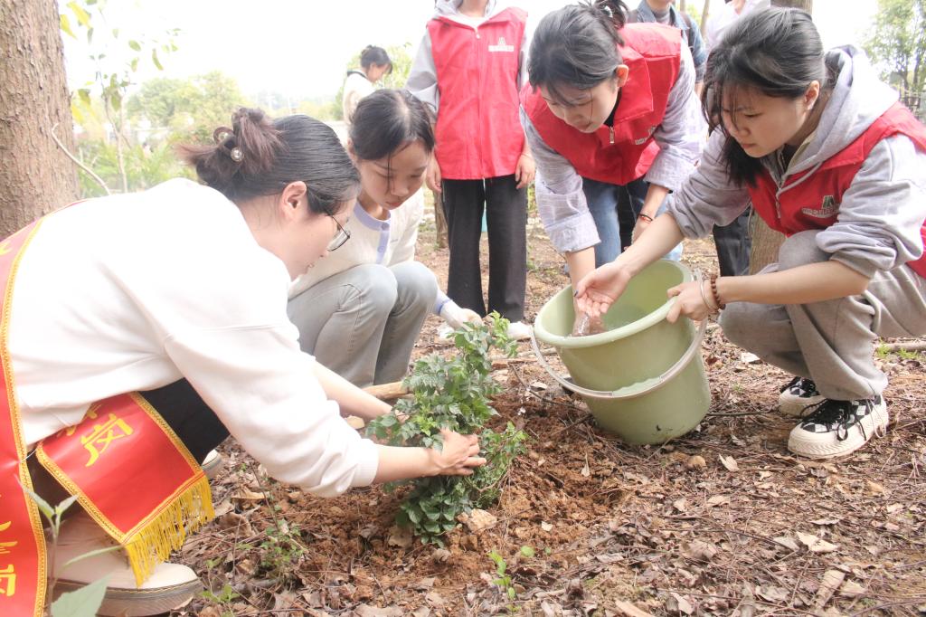 活动中,学院领导班子率先垂范,和大家一起忙碌着。参加植树的师生党员热情高涨,有的挥锹挖土、扶苗培土,有的播撒花种、提水浇灌,配合默契。大家劲往一处使、汗往一处流、干劲十足,呈现出一副热火朝天的劳动场景。