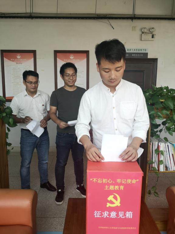 首先,学院在教四楼走廊设置了“‘不忘初心、牢记使命’主题教育征求意见箱”;其次,9月24日下午召开了全院教职工大会,向参会的全体教职工发放了《旅游与风景园林学院领导班子及领导干部意见和建议征求表》,截止到目前共收到教职工39条意见与建议;第三,根据部分老师提出的学院机房配备话筒的意见与建议,学院党委坚持“边学边查边改”。在问题反映的当天,党政领导班子迅速督促实验室解决了学院机房上课“小蜜蜂”的问题,使老师有一个良好的教学环境;第四,针对老师同学们反映的教学楼走廊较黑的问题,9月28日学院启动了走廊亮化工程,预计在10月中旬完工。