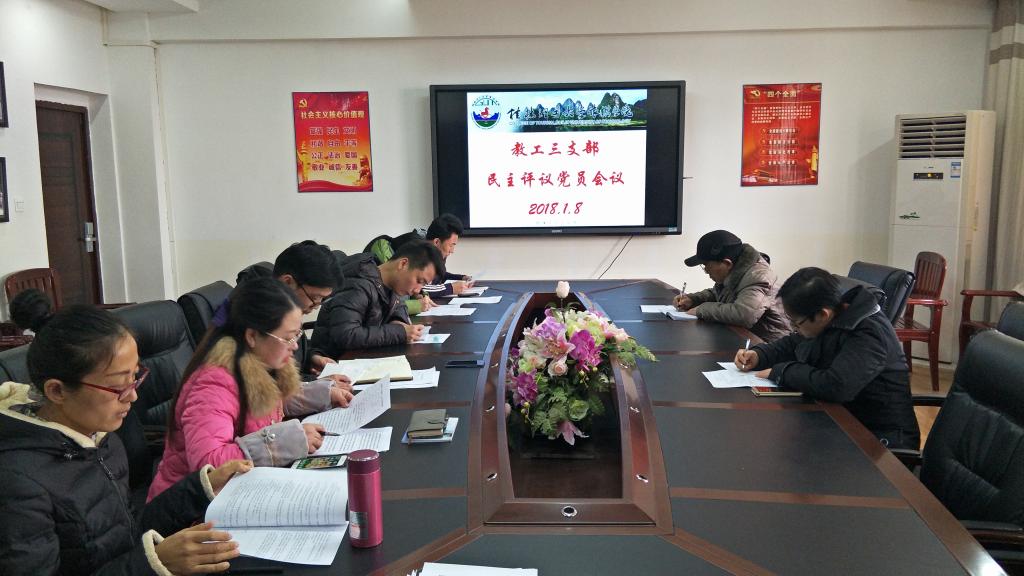 2018年1月8日下午,学院教工三支部在雁山校区4509会议室召开了民主评议党员测评会,会议由支部书记唐晨铭主持,三支部全体党员参加了本次会议。