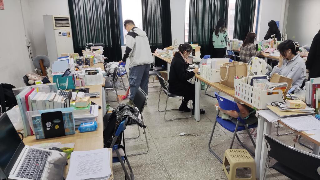 下午14点,党员志愿者准时在雁山校区教四栋考研自习室集合,由组织委员陈紫嫣同志带队对自习室进行清扫工作,参加活动的党员同志们在安排的指定区域内,将桌椅摆放整齐并擦洗桌面、将卫生死角和地面清扫干净。在此次活动中,大家提前做好分工,各司其职,大家都热情高涨、忙的不亦乐乎,积极进行考研自习室的清扫工作。