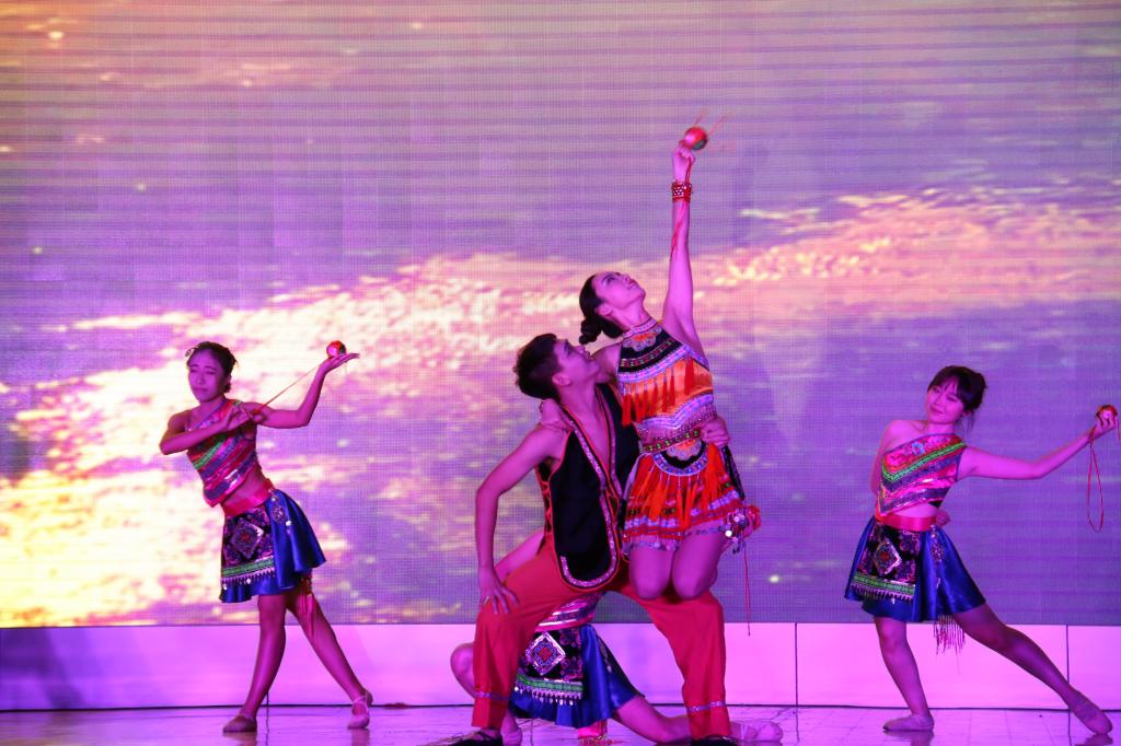 第二篇章:还看今朝。本篇章的视频着眼当下,展现了旅院人们凭着磨砥刻厉的精神,取得的丰功伟绩。接着beats365亚洲版去年举办的超级旅生比赛的获奖者们带来了《三十年金曲串烧》,嗨翻全场。还有今年最美民族花比赛冠军廖梦英现场清唱了壮歌,校模特队也穿上了珍藏的少数民族服饰在舞台上一展民族风采,与此同时,老师们还将绣球抛向观众,引来全场沸腾。接着灯光暗下,我们旅院的老师们奉上了一场茶艺朗诵表演,温文儒雅的茶文化带同学们回归了平静。