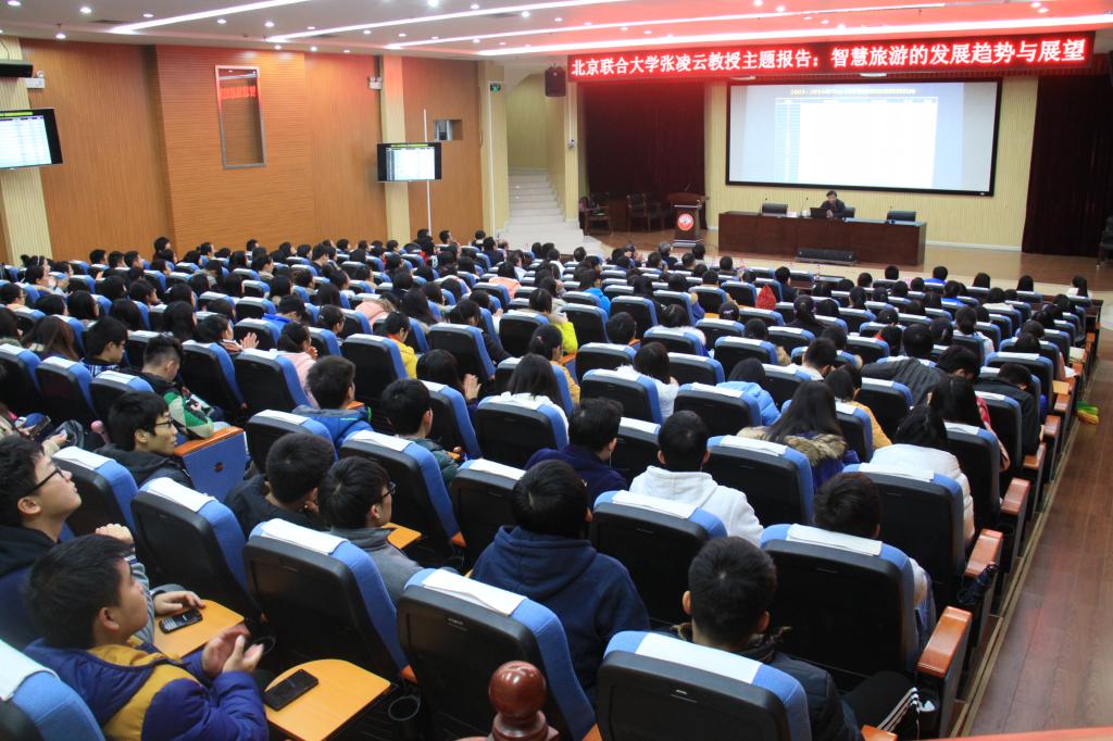 报告会上张凌云教授结合实际案例,从智慧旅游的基础、智慧旅游景区建设、旅游景区大数据建设等六个方面对智慧旅游的发展动向做了深入剖析,最后提出了智慧旅游未来的八个变化趋势。整场报告内容丰富、图文并茂、幽默风趣,让师生们享受了一场生动的学术盛宴。对于学院新增设的智慧旅游管理方向的本科人才培养方案制定以及未来的学科专业建设具有重要的启发意义。