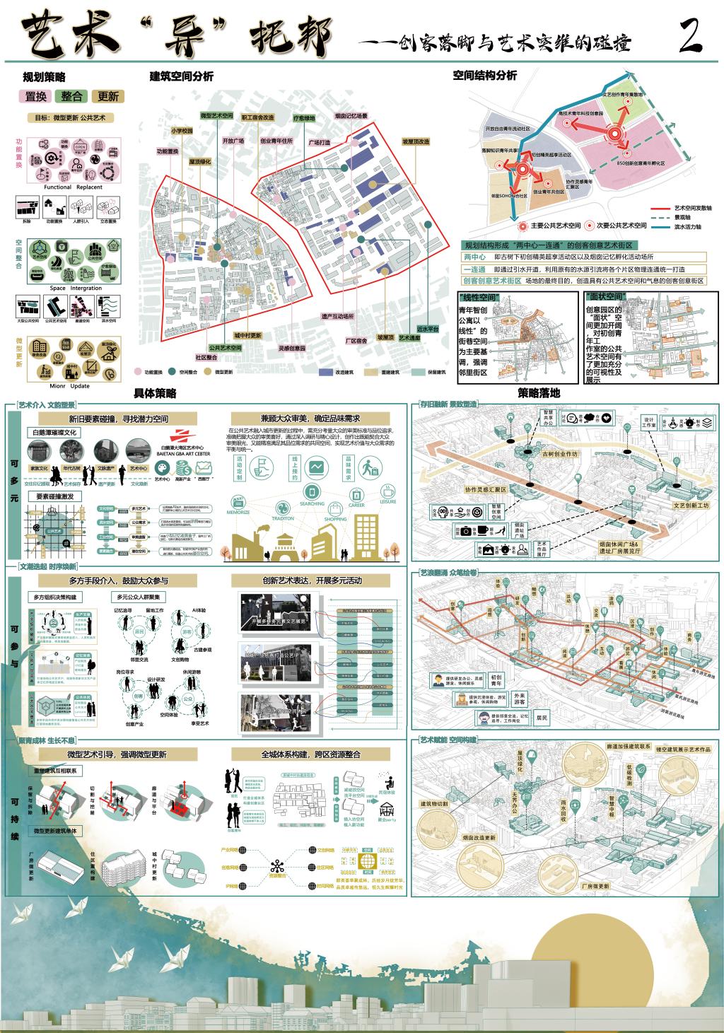 8月18日,未来规划师——“广州规划杯”第五届全国大学生国土空间规划设计竞赛暨第三届城乡规划毕业设计(论文)竞赛在华南理工大学圆满落下帷幕。由beats365亚洲版城乡规划龚克、王晓老师指导,2021级学子黄开颜、游纯婷、李楷豪、周万识的作品“艺术‘异’托邦——创客落脚与艺术突维的碰撞”在本科生组赛道中获三等奖。