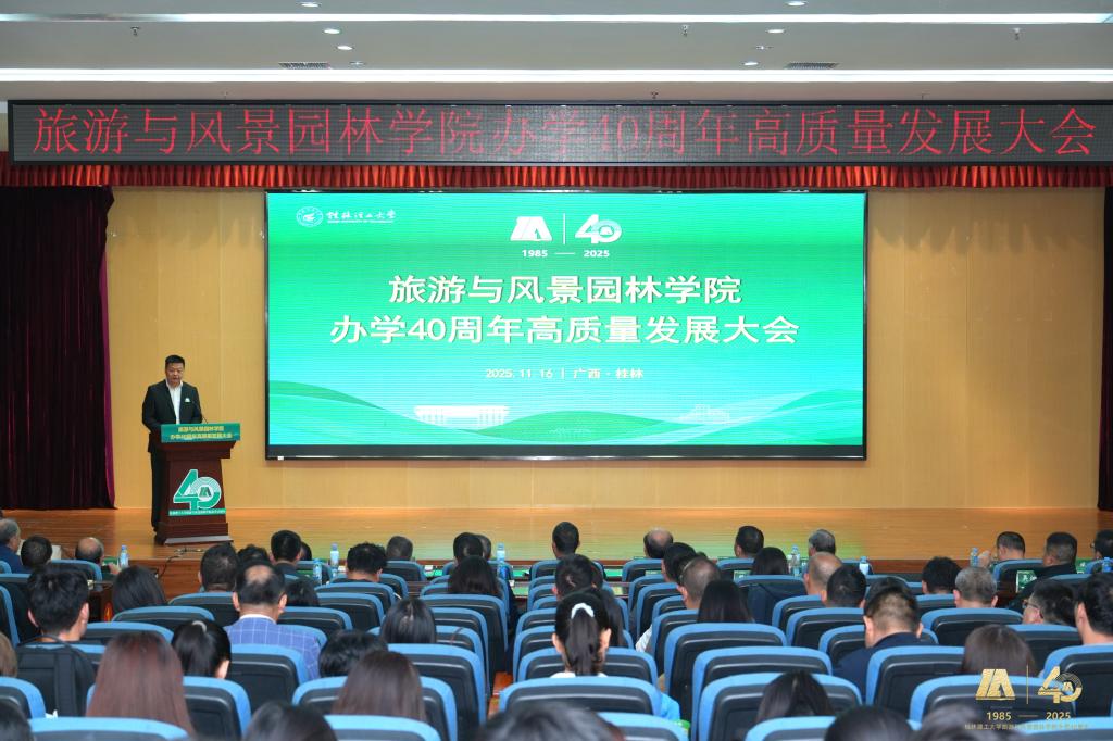 罗盛锋代表学校向学院办学40周年表示热烈祝贺,对学院在人才培养、科学研究、社会服务等方面取得的显著成绩给予了充分肯定。他指出,学院40年来扎根八桂大地,为国家培养和输送了数以万计的高素质专业人才。面向未来,他强调学院要深入贯彻学校第四次党代会精神,深化教育教学改革,提升科研创新能力,服务国家战略和地方经济社会发展。