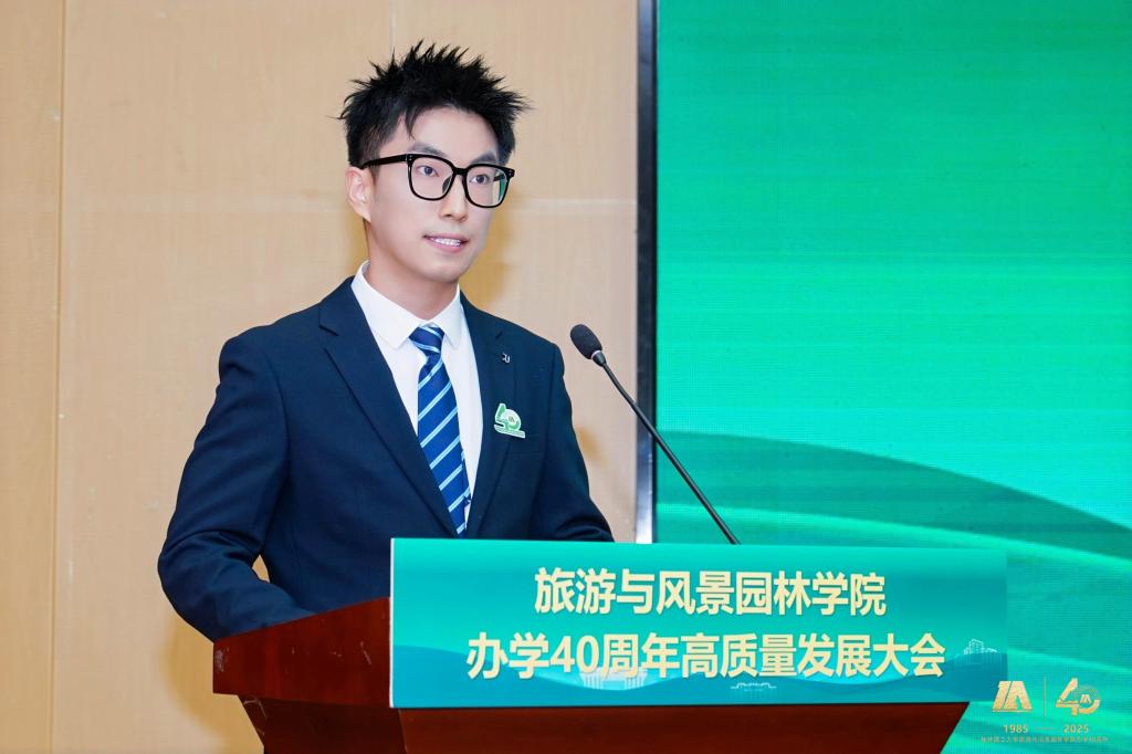 大会还邀请了多位校友代表发言。1985级校友李政敏、1995级校友阚如良、1994级校友曾垂华、1996级校友李毅艺、2010级校友张婷玉等分别发言,校友们分享了在校学习的美好回忆和毕业后的奋斗历程,表达了对学院的感激之情和美好祝愿。学院智慧酒店管理系教师黄燕玲和2025级风景园林专业博士生王磊作为在校师生代表发言,展现了学院师生接续奋斗、勇攀高峰的精神风貌。