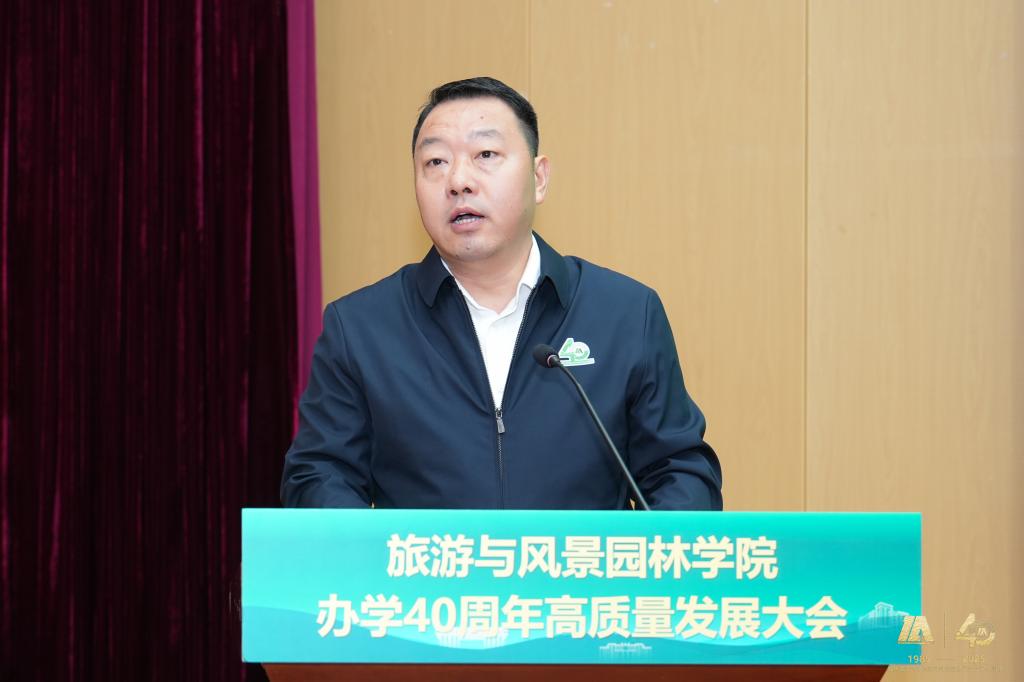 学院党委副书记、院长郑文俊以《四秩育才,旅创未来》为题作主题报告,系统梳理学院40年发展脉络与未来方向:40年来,学院从1985年初创至形成本-硕-博完整人才培养体系,在校生规模显著增长;专业建设成效突出,旅游管理、酒店管理通过UNWTO国际认证,城乡规划通过住建部评估,旅游管理专硕(MTA)获教育部“B+”评级;科研聚焦“智慧文旅+民族文化+山水保育”,累计获国家级项目70项、经费超8000万元;学生竞赛屡获国家级奖项。未来学院将以精神传承为根基,深化产教融合,推动科技赋能培育数字人才,拓展全球网络提升国际影响,全力建设特色鲜明、国内一流的学院。
