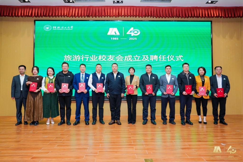 大会举行了旅游行业校友会成立及聘任仪式。根据选举结果,李政敏、阚如良担任名誉会长,刘胜峰担任会长,周宇翔担任常务副会长,吴泗海、邱璞、苏善君、邹志鹏、谭欣、王磊、李永泉担任副会长,王菲菲担任秘书长,陈美龙、吴育俊担任副秘书长。罗盛锋、郑文俊为他们颁发了聘书。