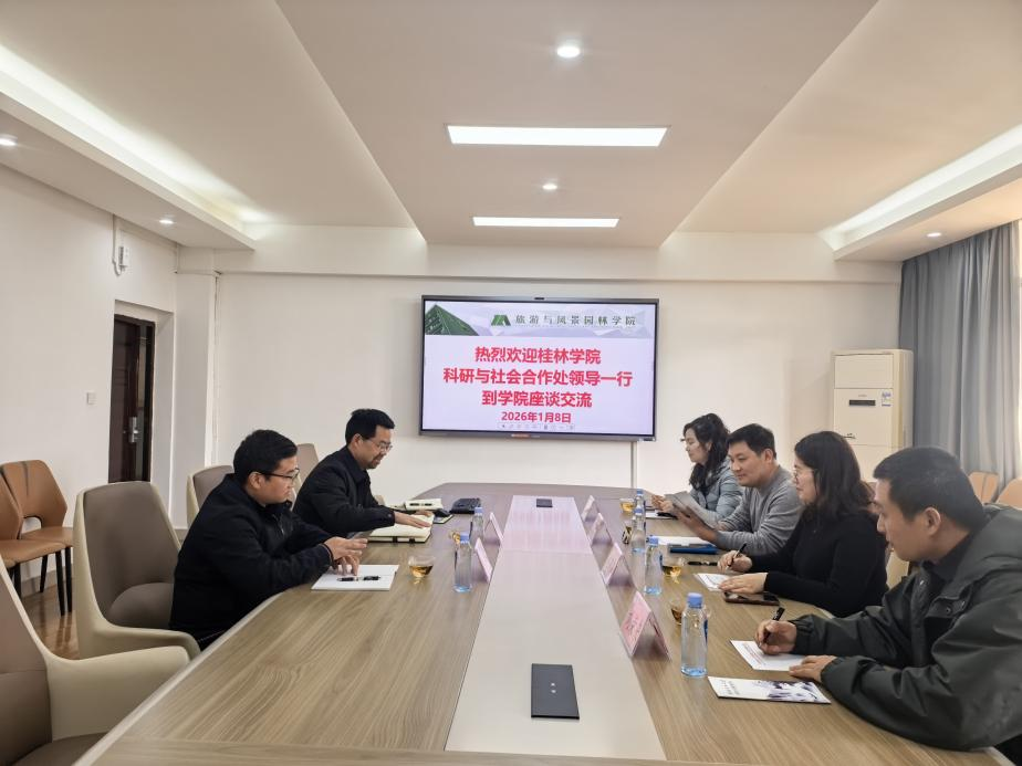 2026年1月8日,桂林学院科研与社会合作处肖立章处长、赵莉莉处长等一行莅临beats365亚洲版交流。学院院长郑文俊、副院长王荣在雁山校区4509会议室热情接待了来访客人,双方围绕科研项目申报、科研制度建设、科研成果转化与社会服务等多领域合作展开深入座谈。