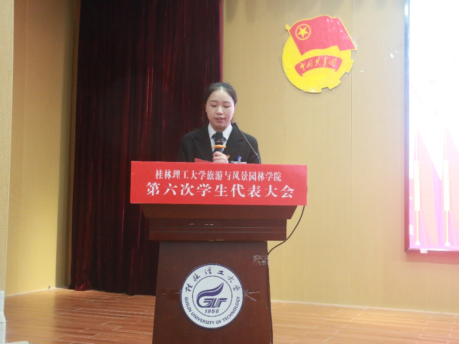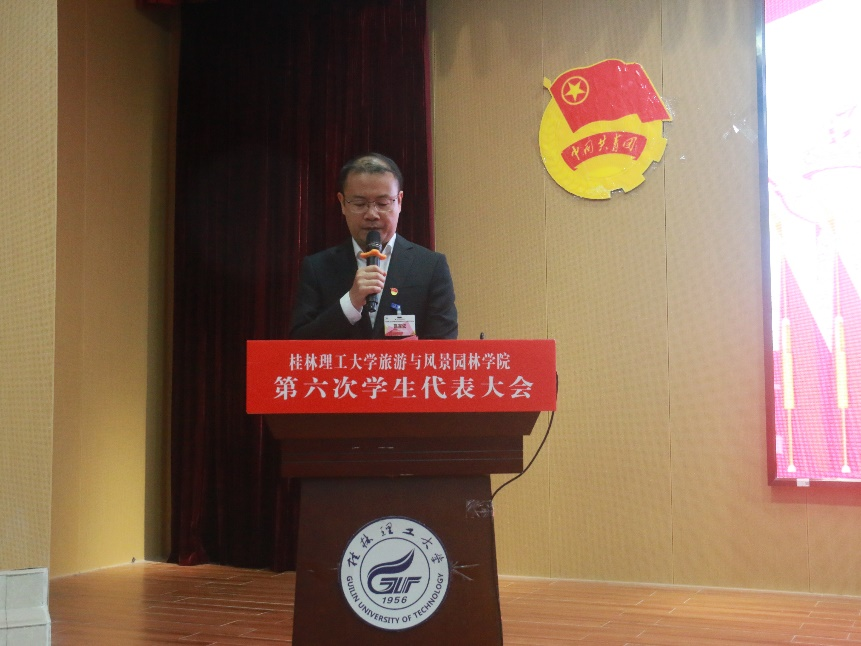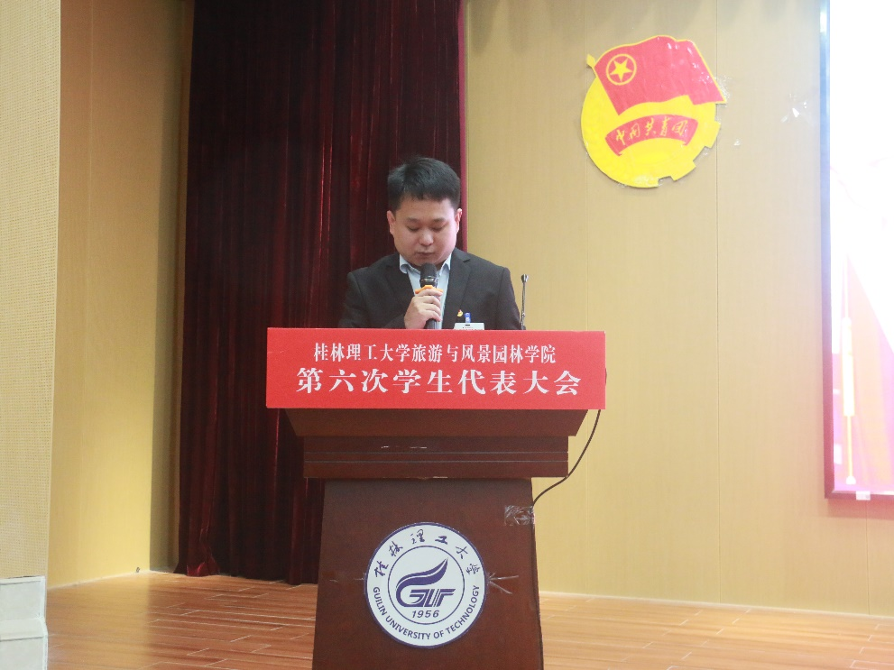 2023年10月28日上午,旅游与风景园林学院在雁山校区图书馆报告厅召开第六次学生代表大会,出席此次大会的领导嘉宾有学校团委副书记慕宗良老师、学院党委副书记罗义淞老师、学院团委副书记王成圆老师、学校学生会主席团成员罗祎蕾、学院辅导员以及学院第五届团委·学生会主席团成员,各年级学生代表、上一届学生会成员和第六届主席团候选人参加本次大会。会议由学院兼职团委副书记贾恒存主持。