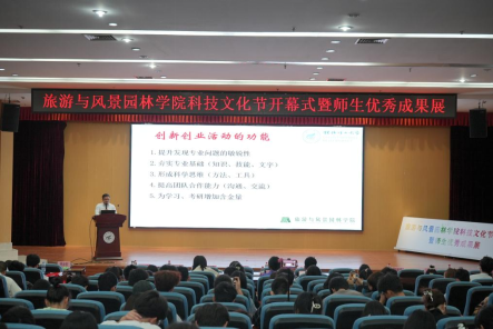 学院党委副书记罗义淞向现场师生详细介绍了科技文化节实施方案以及整体安排。本次科技文化节通过开展专业行业发展讲座、茗堂有约等各类专业类讲座和植物景观大赛、红色故事讲解大赛等特色文化活动,引导广大青年敢于创新、富于创意、乐于创造、勇于创业。
