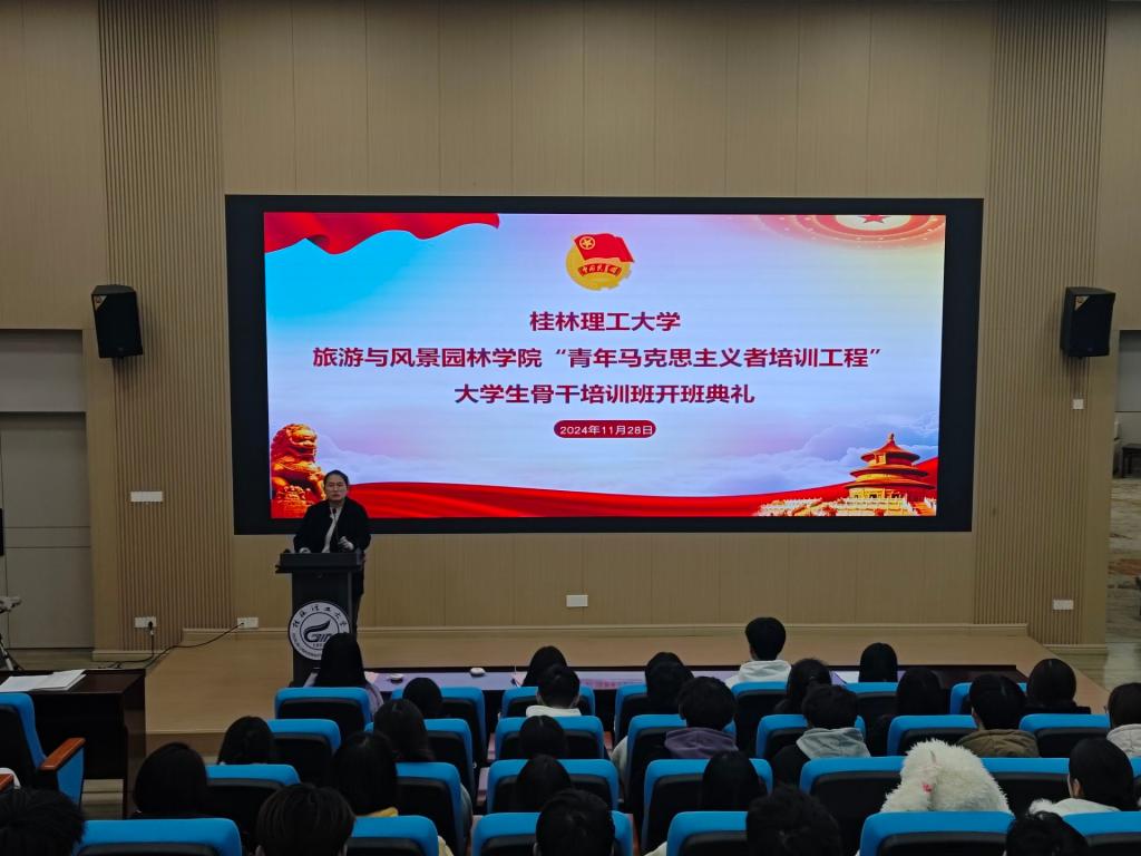 为深入学习贯彻落实习近平新时代中国特色社会主义思想以及党的二十届三中全会精神,扎实推进青年马克思主义者培养工程,2024年11月28日晚,旅游与风景园林学院于博雅楼报告厅举办第五期“青年马克思主义者培养工程”培训班。学院团委副书记王成圆、学院青马班98名学员参加开班仪式。