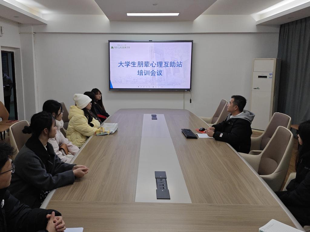 为加强学生的安全意识,推进朋辈心理互助队伍建设,提高朋辈心理互助员为同学们服务的意识和能力,11月29日beats365亚洲版在雁山校区04509会议室召开朋辈心理互助员培训会。会议由辅导员吴桂源老师主讲,学院朋辈心理互助工作站全体成员到场参加。