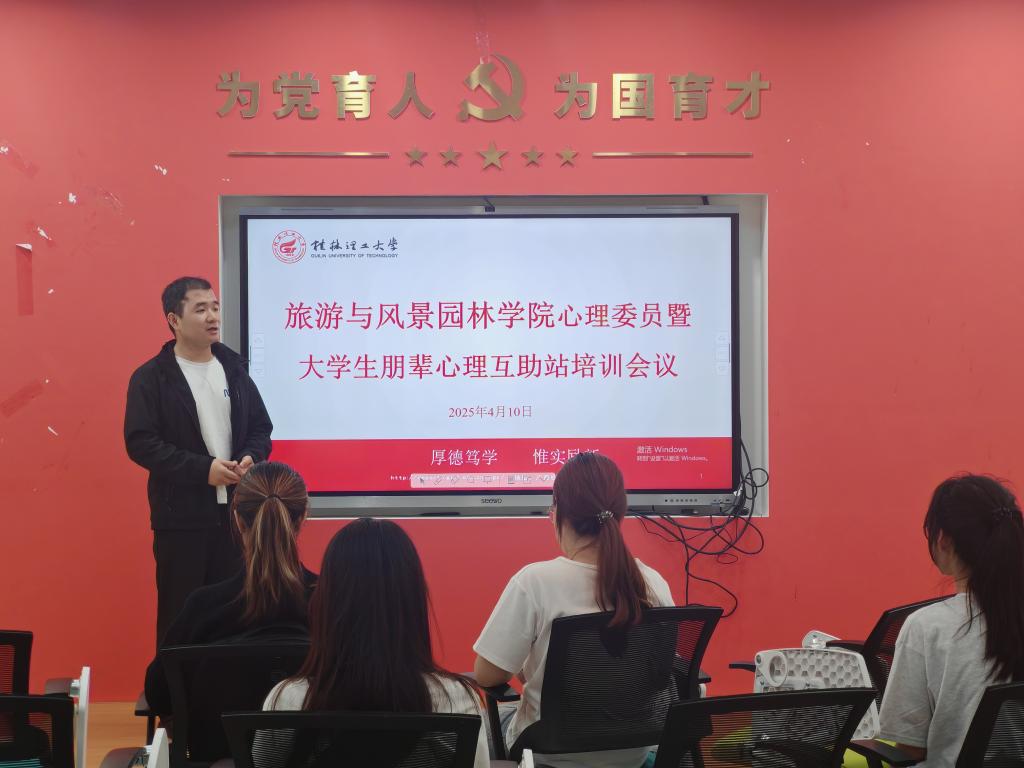 为认真贯彻落实教育部等十七部门联合印发的《全面加强和改进新时代学生心理健康工作专项行动计划(2023—2025年)》要求,结合自治区教育厅和学校关于开展2025年“3•25”心理健康教育活动季的通知精神,有效提高学院学生心理委员的工作能力,扎实做好心理健康教育工作,4月10日,学院在雁山校区嘉园一站式学生社区思政大讲堂召开2025年春季学期心理委员暨大学生朋辈心理互助站培训会议。会议由学院兼职辅导员吴桂源主持,学院全体心理委员参加。