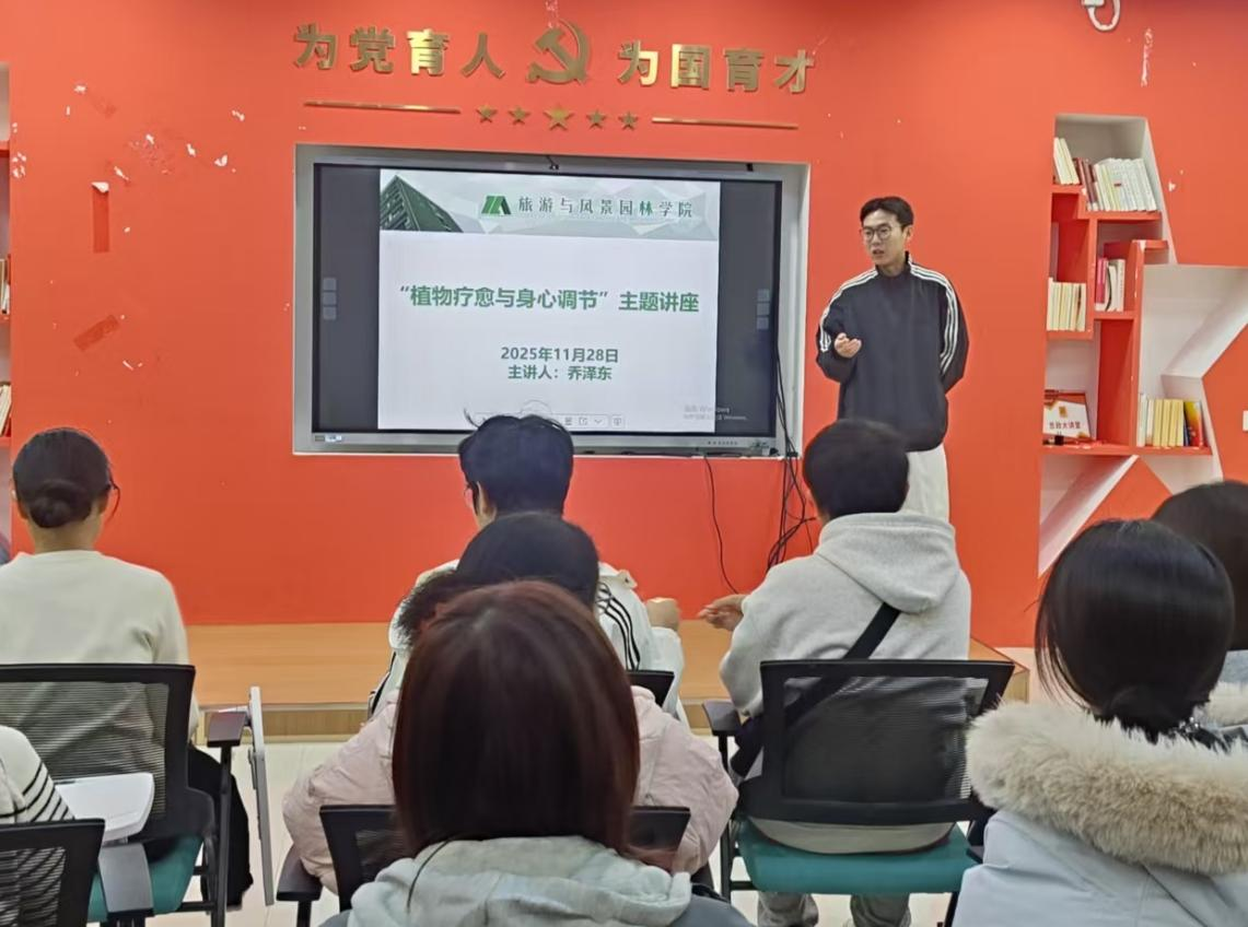 11月28日,学院在嘉园思政大讲堂温馨举办“植物疗愈与身心调节”认知疗愈主题讲座。讲座由学院心理专项工作老师乔泽东主讲,吸引了40名学生参加。