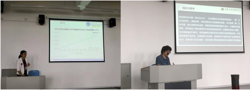 beats365亚洲版张婷副教授以《广西隆安“那”文化与乡村旅游融合发展研究》为题,以文化和旅游融合为切入点,选取广西隆安为研究区域,通过问卷调查、实地访谈和田野调查的方式获取数据,重点研究了“那”文化与乡村旅游融合发展现状及存在问题,最后提出“那”文化与旅游融合创新路径。