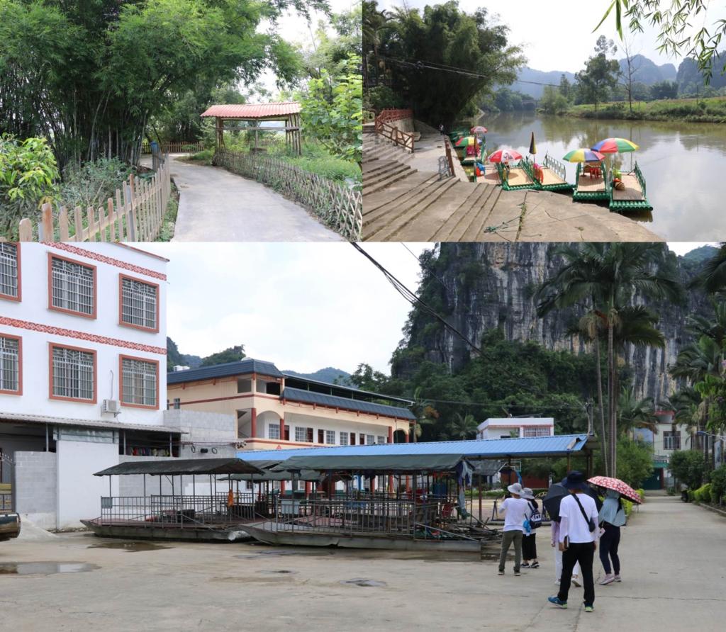 最后,一行人来到下金庄。目前整个村子被开发为霞客桃源景区,通过调查发现,依山傍水的霞客桃源景区,环境优美,旅游设施齐全,囊括了吃住行游购娱旅游六要素在内。通过与景区工作人员以及村民的访谈得知,霞客桃源景区在旅游旺季日游客量可达3万人,吸引了南宁市、柳州市以及宾阳县的游客,但在淡季,即非寒暑假的工作日,游客寥寥无几,由此可看出该景区的旅游项目还较少、吸引力还不足,可通过非节假日出台优惠票价、更多旅游体验项目等手段吸引更多游客。