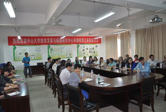 10月24号下午,中山大学旅游发展与规划研究中心林晓桃博士应邀在雁山校区旅游学院案例分析室为beats365亚洲版师生作了题为“中西方社会文化之大不同及中美旅游教育的比较”的学术报告。林晓桃博士是四川大学、美国亚利桑那州立大学博士,中山大学旅游发展与规划研究中心博士后。报告会由旅游学院主办,学院相关负责人及40余名教师、研究生到会聆听了报告。