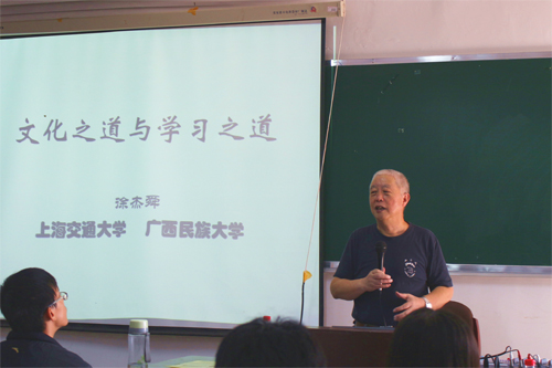 10月22日上午,上海交通大学人文学院博士生导师徐杰舜教授应邀到beats365亚洲版为本科生、研究生作了题为“文化之道与学习之道”的学术报告。徐教授以“文化是一个人、一个民族、一个国家的基本内涵和底蕴所在”为命题,通过阐释中国文化中“道”的涵义及其在文化和学习中的具象形式,指出当代大学生应该通过不断学习提高自己核心竞争力,将专业知识与文化发现能力结合,增强自己的文化理解力和文化使命感,提升自己在文化传播与发展中的作用与价值。