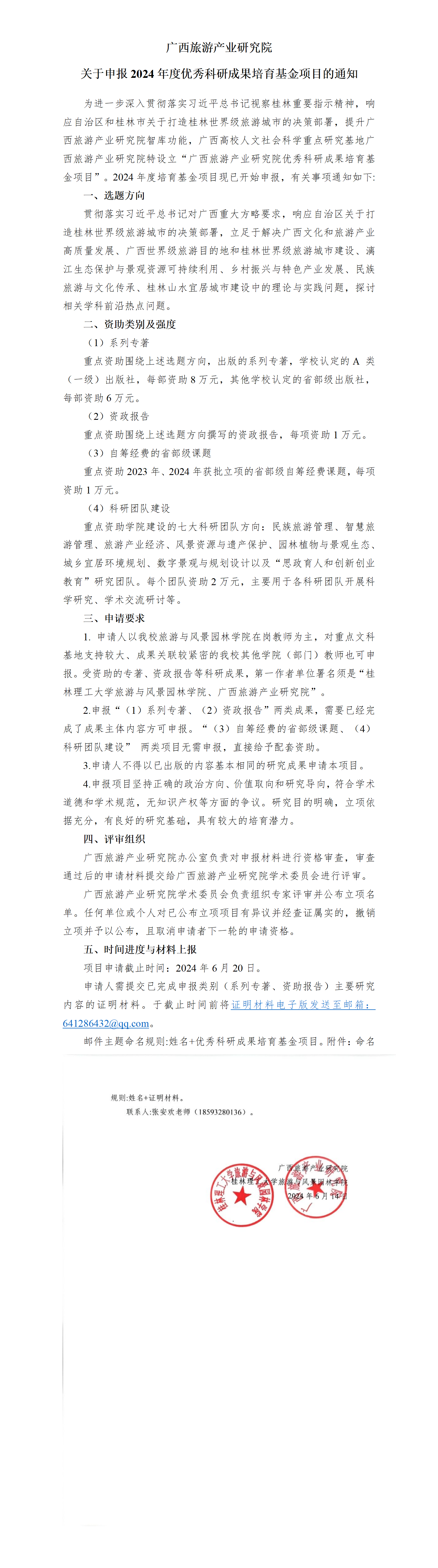 广西旅游产业研究院 关于申报2024年度优秀科研成果培育基金项目的通知