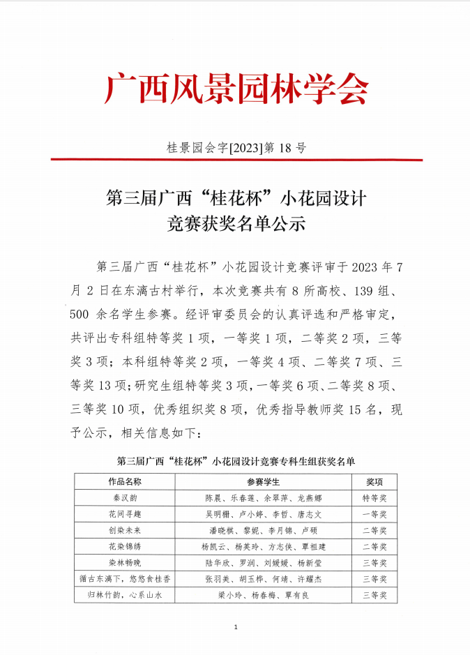 第三届广西“桂花杯”小花园设计竞赛获奖名单公示