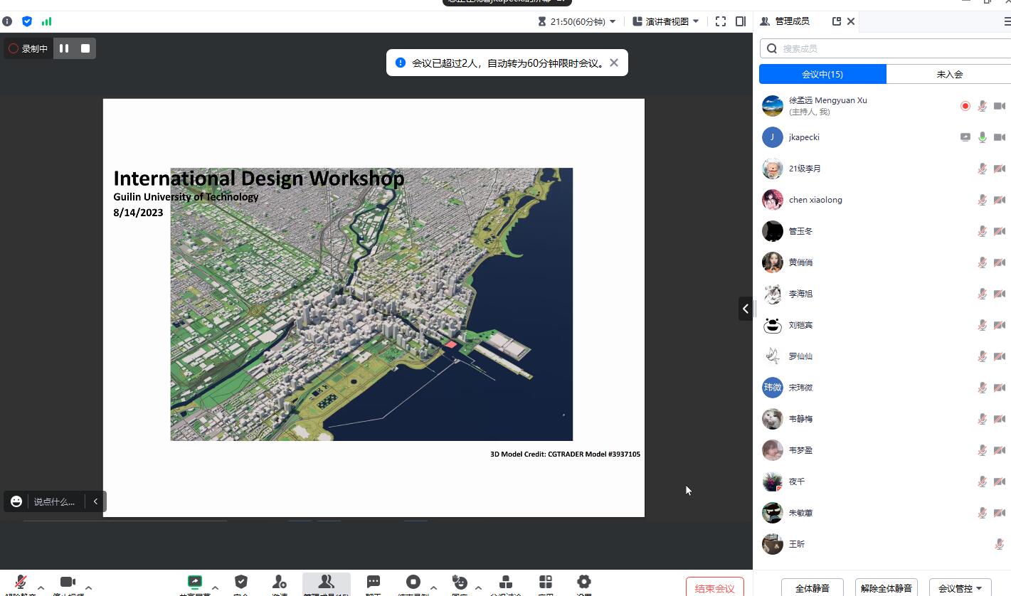 主动融入区域发展、学校建设新发展格局,加快推进一流学科与专业建设,助力师生开拓国际视野、增强文化自信和文化自省、深入训练学生专业核心能力,风景园林教研室在2023年暑期开设暑期国际设计工作坊。这是beats365亚洲版开展的本年度第二项暑期国际课程项目。此次国际项目邀请三位海外风景园林及相关领域专家Dr. David Wang,Klarke Wang,John Kapecki,线上为本科生与研究生开设为期一周的全英文课程。受邀专家Dr. David Wang毕业于美国密歇根大学,目前担任美国华盛顿州立大学建筑与工程学院博士生导师,研究领域涵盖人居环境研究方法、建筑历史与理论等方面,具有丰富的教学和研究经验;Klarke Wang毕业于美国南加州大学,目前为Variation Design设计事务所创始人及主创设计师;John Kapecki为芝加哥市城市规划部门规划师和城市法规专家,两人均拥有丰富的风景园林实践项目经验。