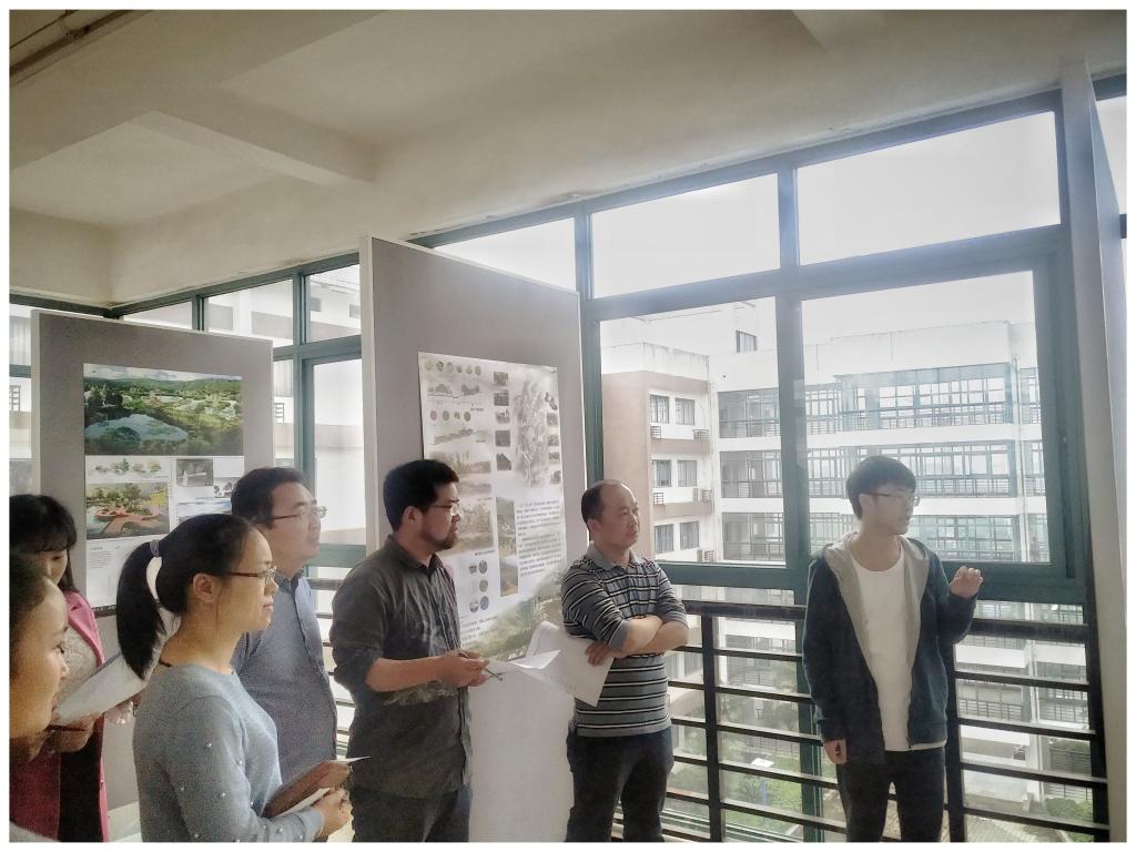 11月5日中午,beats365亚洲版风景园林15级于雁山校区教四栋五楼、六楼展廊,开展了《Studio与专题设计》课程汇报活动,风景园林教研室全体教师分两个评审组,对15级全体同学的结课作业展板进行了专业点评和指导。汇报现场每组同学阐述了各自的设计理念以及最后效果呈现。通过项目实践,学生学会了如何完成一整套设计,从前期项目调研、平面图纸绘制、再到模型建立、最后到效果图呈现,每个同学都受益匪浅,为今后的课程打下坚实的基础。