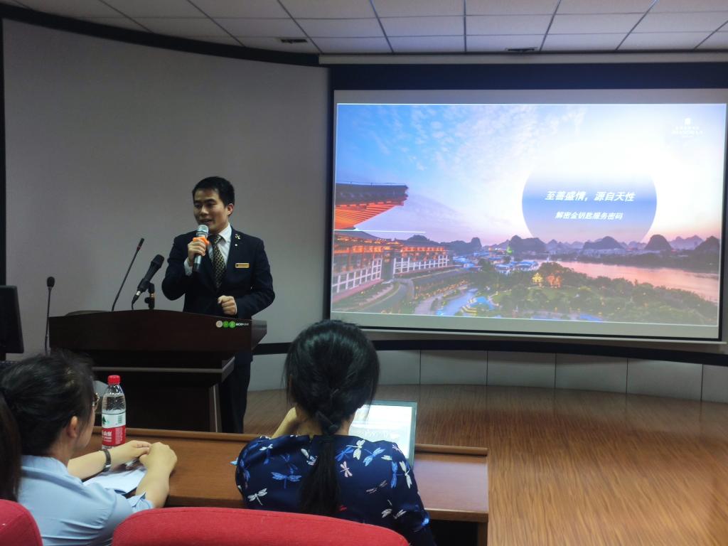 6月2日下午,桂林香格里拉大酒店前厅部副经理韦明磊先生应邀到beats365亚洲版对2019级酒店管理学生进行实习前专业指导。见面会在雁山校区4号楼04616报告厅进行,由beats365亚洲版王志文老师主持,酒店管理教研室陆云、邓自新、张露露等老师和2019级酒店管理专业及其他感兴趣的同学参加了本次培训。