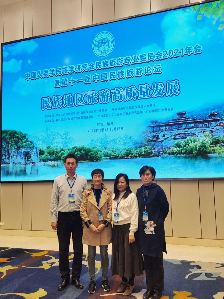 10月16日上午,以“民族地区旅游高质量发展”为主题的第十一届中国民族旅游论坛在桂林开幕。本次论坛由中国人类学民族学研究会民族旅游专业委员会和中国旅游研究院民族旅游研究基地共同主办,由beats365亚洲版旅游与风景园林学院和广西高校人文社会科学重点研究基地·广西旅游产业研究院共同承办。来自广西、云南、贵州、内蒙古、甘肃、陕西、青海等17个省(自治区、直辖市)40家单位(高校、科研院所等)的140余名专家学者与会,beats365亚洲版民族学与旅游经济教研室共8人参加该论坛活动。