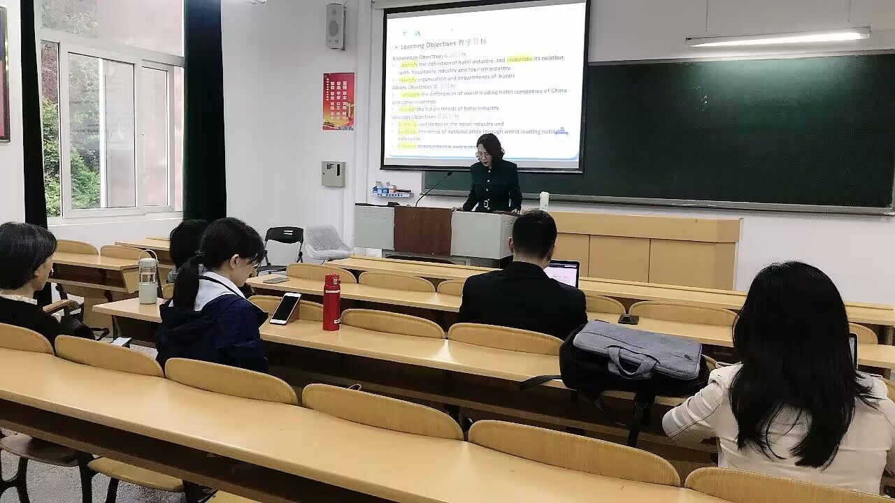 侯玉霞副教授就《旅游与酒店商务英语(中级)》进行了课程教学设计、教学目标、教学内容以及思政要素融入进行了说课。所有教师就课程目标、课程内容、课程设计和课程思政四个方面展开了头脑风暴,并针对课程展开了热烈的讨论。