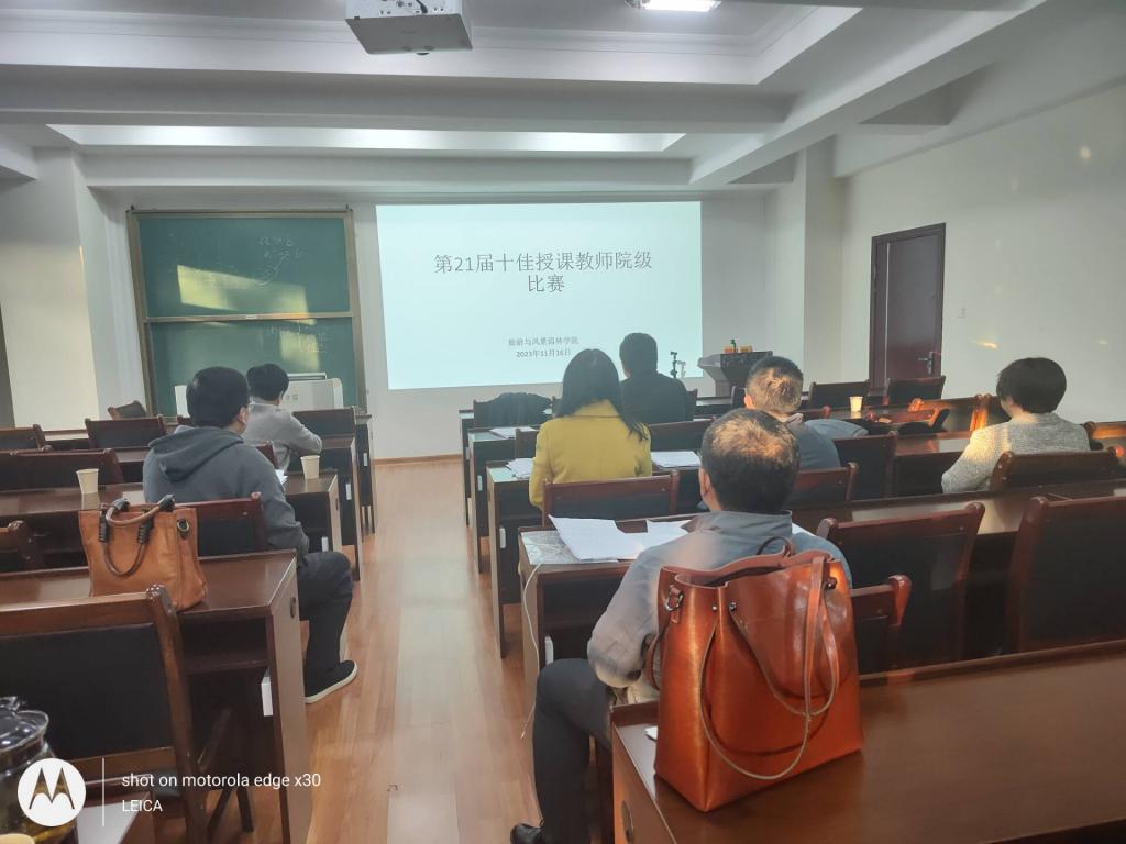 为了进一步提升beats365亚洲版青年教师的教学能力和业务水平,培养青年教师爱岗敬业、严谨治学的态度,努力造就一支师德高尚、业务精湛、充满活力的高素质专业化创新型教师队伍,旅游与风景园林学院于11月16日在屏风校区7409会议室进行了十佳授课教师比赛预赛。比赛全程参照校级决赛的方式进行。贺剑武副院长、王荣院长助理和学院督导组一起对10名参赛教师的授课比赛进行了现场评分和点评,针对教学设计、教案、现场教学等方面提出了意见和建议。