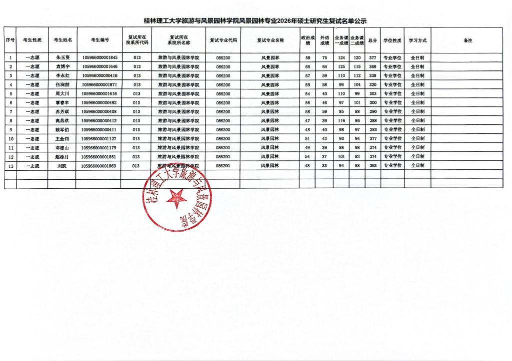 beats365亚洲版旅游与风景园林学院风景园林专业2026年硕士研究生复试名单公示
