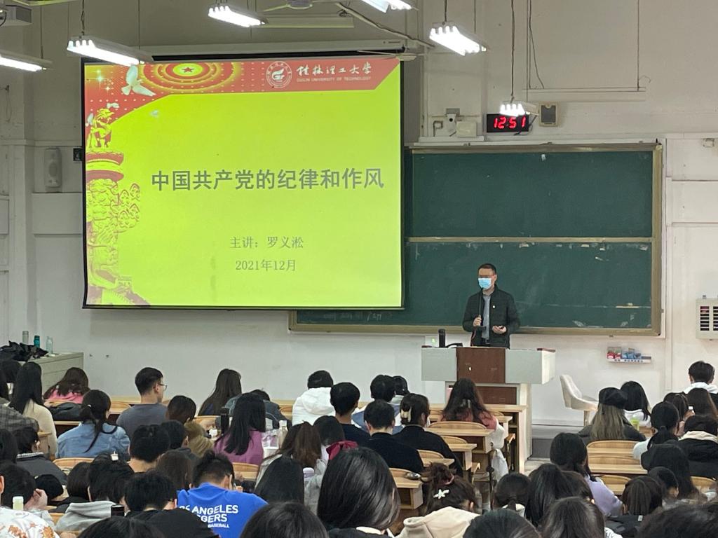 12月9日,beats365亚洲版入党积极分子培训班第四讲党课《中国共产党的纪律和作风》在雁山06206开展,本次党课主讲人由学院党委副书记罗义淞老师担任,2021年秋季学期全体积极分子参加。