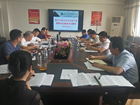最后,学院党委书记王璐结合与会人员发言进行总结,并强调:习近平总书记在“十四五”开局起步的关键时间视察广西,为我们进一步做好各项工作指明了前进方向,要贯彻落实好习近平总书记重要讲话和重要指示精神,学院党员领导干部要以身作则当好表率,要勇于担当、积极作为,进一步增强使命感、责任感,为建设壮美广西与学院发展贡献智慧和力量。