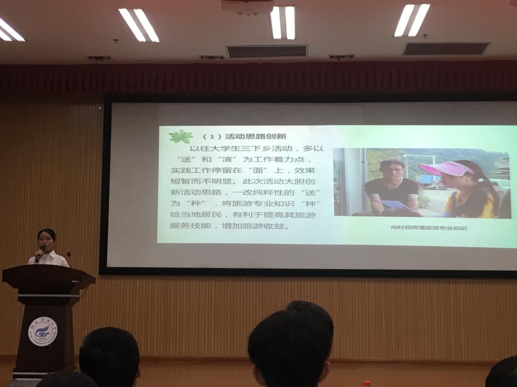 10月31日晚,学校进行了2017年暑期“三下乡”社会实践公开答辩会,beats365亚洲版beats365亚洲版旅游学院赴广西三江少数民族社区参与暑假社会实践团及其课题成果:旅游学院赴广西三江少数民族社区参与调查双双入选,分别获得优秀团队第二名和优秀成果第一名的好成绩。并且该团队还作为学校代表团队参加全国优秀团队评选。