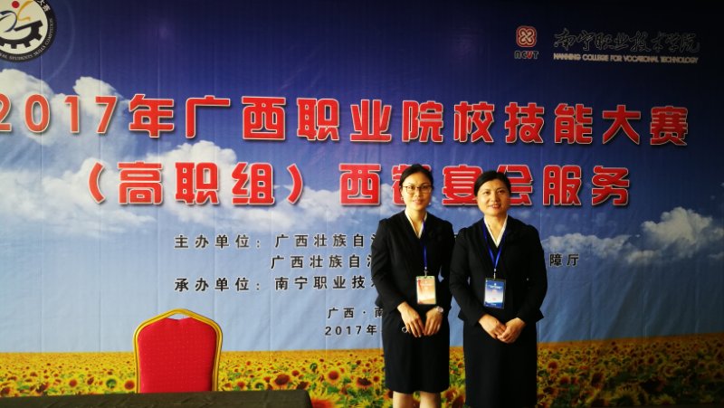 2017年4月19至20日,旅游学院酒店管理教研室邓敏老师和毛金凤老师受广西壮族自治区教育厅邀请,担任2017年广西职业院校技能大赛高职组“西餐宴会服务”项目评委。