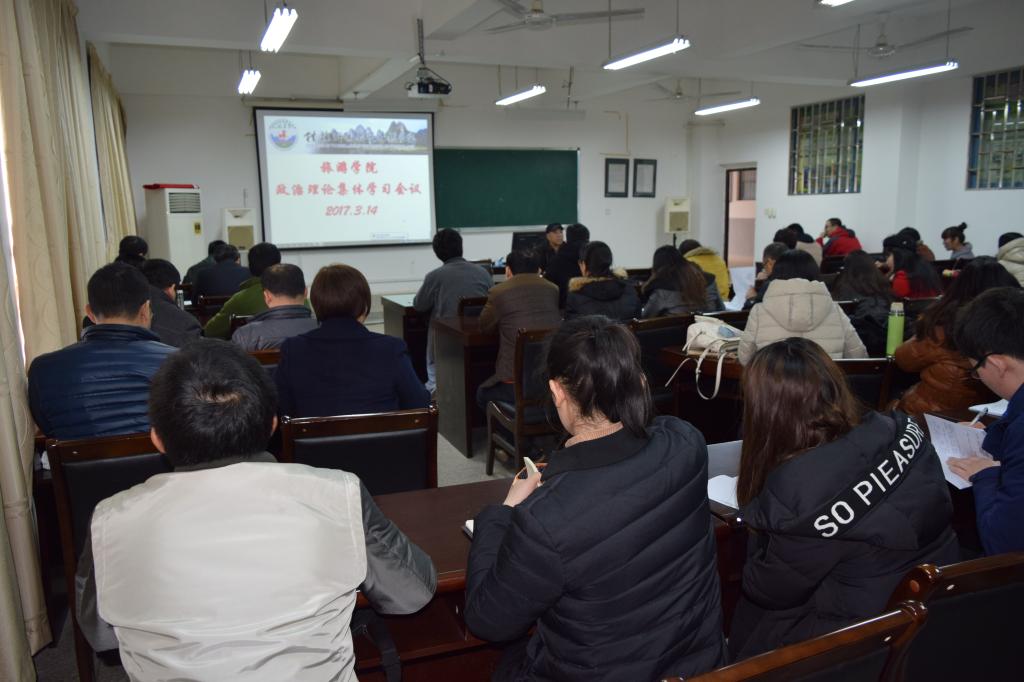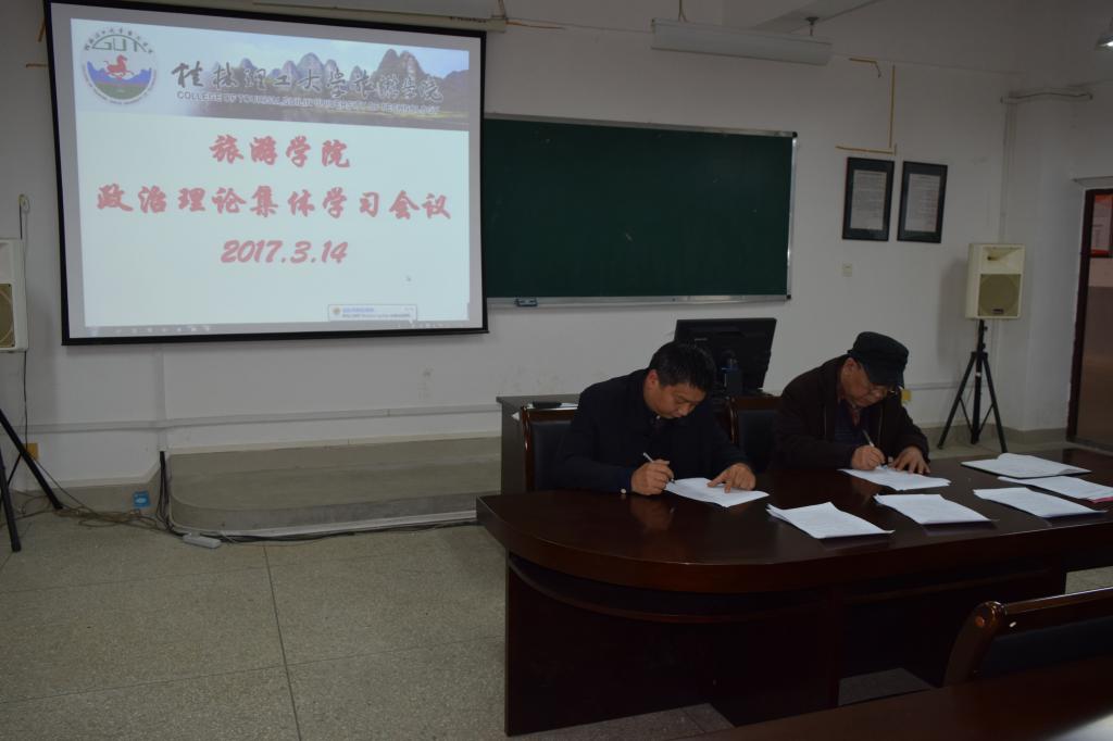 3月14日下午,学院在雁山校区4614教室召开了政治理论集体学习会议,在家院领导,学院全体教师参加了此次会议,会议由学院党委李少游书记主持。
