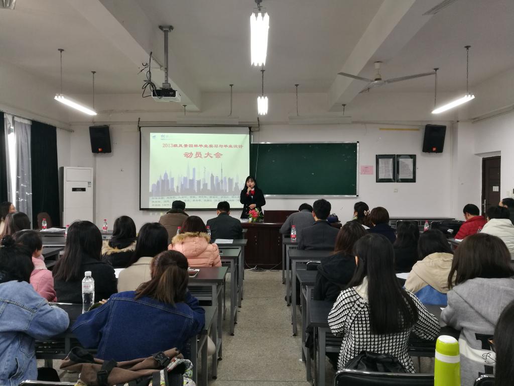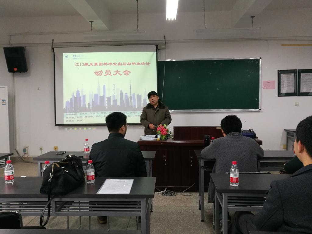 为使我专业13级毕业生更好了解毕业实习的重要性,做好实习的充分准备,1月8日下午,风景园林教研室于雁山校区04519专业教室召开了风景园林专业13级毕业实习动员大会。学院李少游书记、郑文俊副院长、各指导教师及13级全体在校毕业生参与了此次大会。