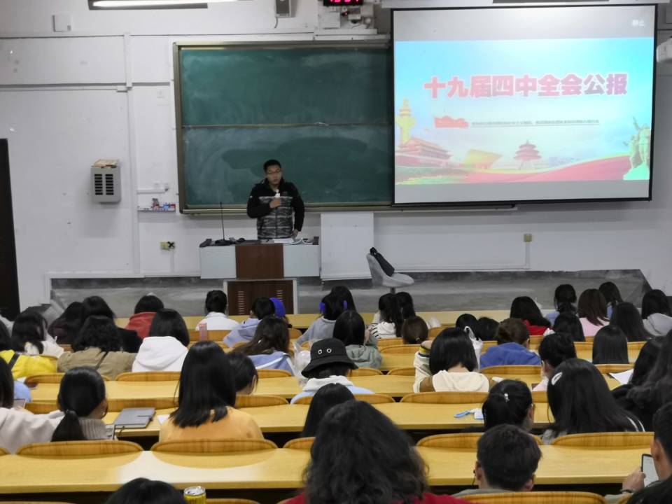 学习会紧扣党的十九届四中全会主题,从坚持和完善中国特色社会主义制度等十三个方面进行了全面系统的宣讲。各年级辅导员紧紧围绕学习贯彻习近平总书记在党的十九届四中全会上的重要讲话和全会精神,系统介绍了党的十九届四中全会的时代背景、重大成果和重要意义。深入浅出、生动精彩地讲解了党的十九届四中全会的主要精神和丰富内涵。同时强调,党的十九届四中全会是我们党站在“两个一百年”奋斗目标历史交汇点上召开的一次十分重要的会议,是在新中国成立70周年之际、我国处于中华民族伟大复兴关键时期召开的一次具有开创性、里程碑意义的会议。