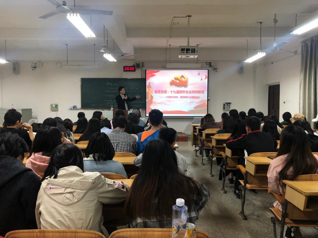 12月15日晚,beats365亚洲版各年级在成长成才课教室开展了党的十九届四中全会精神专题学习会。学院全体同学参加了学习会。