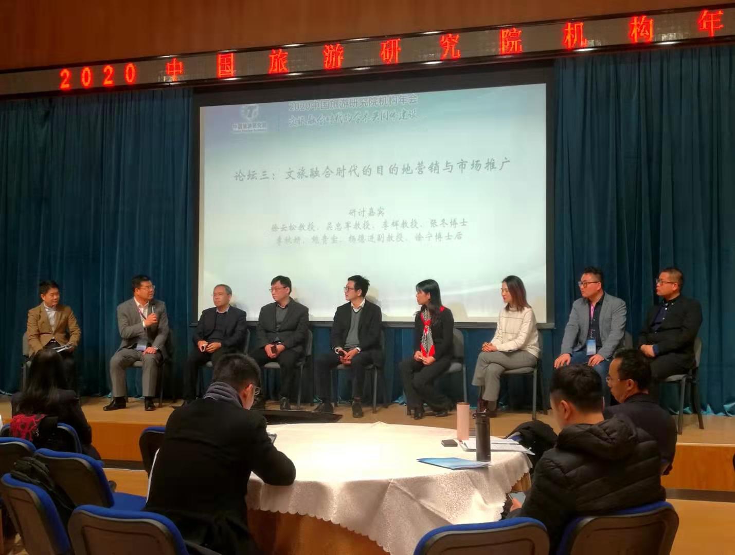 在12月26日中国旅游研究院机构年会上,吴忠军院长参加分论坛三“文旅融合时代的目的地营销与市场推广”的座谈,与会专家就从市场需求变化、细分群体的心理诉求、新媒体营销工具的应用、大数据营销、文旅融合背景下旅游目的地营销中文化因素应用等方面进行了研讨。