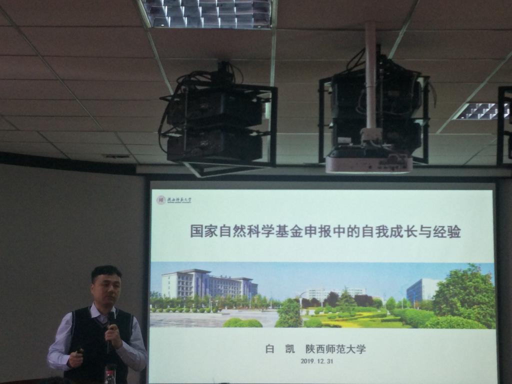 12月31日上午,陕西师范大学白凯教授在雁山校区4616教室作了题为“国家自然科学基金申报中的自我成长与经验”的学术报告。学院师生聆听了此次报告。