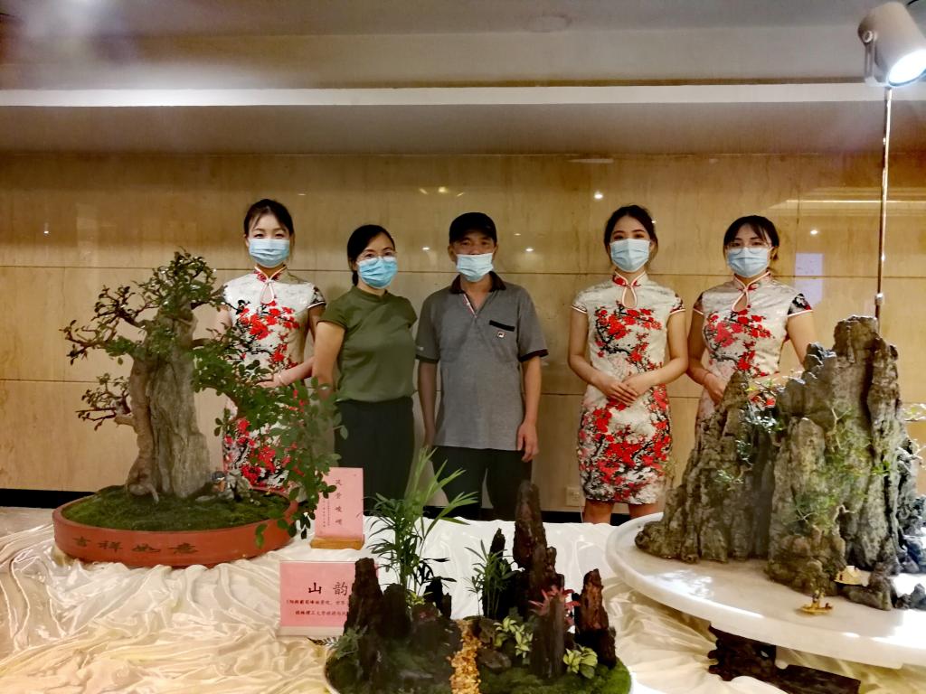 作品紧贴“文化和自然遗产”主题,展现了桂林丰富多彩“文化和自然遗产”景观和茶文化,受到与会嘉宾的广泛好评。山水盆景作品“梦里故乡,诗意梯田”表现了“全球重要农业文化遗产”的龙胜梯田景观,山水微景观作品“山韵”和山水盆景“江作青罗带,山如碧玉簪”(与瓦窑小镇盆景大观园联合创作)分别体现了“世界自然遗产” 桂林葡萄峰林和漓江峰丛喀斯特地貌景观,茶文化活动则向嘉宾展示了素有“植物界大熊猫”和“茶族皇后”的广西特有金花茶。参加“文化和自然遗产日”活动,锻炼了学生的实践动手能力,拓展了师生的专业视野,也提升了学院的社会影响力。