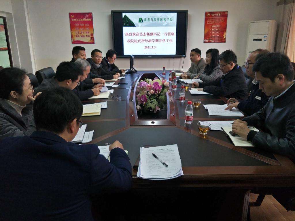 在认真听取汇报后,吴志强副书记对beats365亚洲版新学期开学准备工作、“十三五”目标完成情况、“十四五”工作设想等工作予以了充分的肯定,根据学院目前发展建设状况以及春季学期开学准备情况等方面进行了指导并提出了三点要求。一是要贯彻落实学校召开的2021年工作会议精神,认真学习解校长在学校2021年工作会议上的报告内容;二是要根据学院实际情况,结合党建工作开展党史学习教育以及举办建党100周年的相关庆祝活动;三是要组织教师、带领学生利用旅游、风景园林的专业学科优势,做好学院“互联网+”的相关竞赛工作。