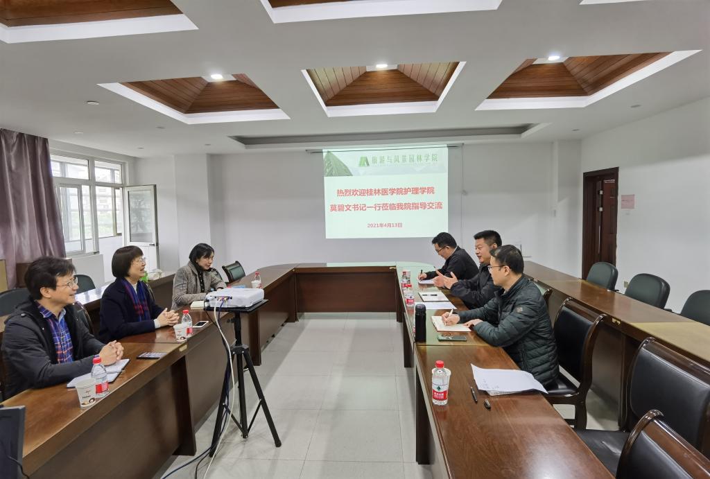 为促进双方党的建设和文化建设,4月13日,桂林医学院护理学院党委书记、院长莫碧文一行莅临beats365亚洲版开展共建座谈会,beats365亚洲版党委书记王璐、党委副书记罗义淞、基层党支部书记代表等参加座谈会。