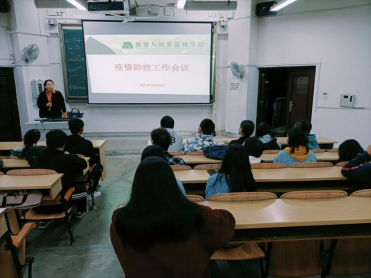 会上,王成圆老师传达了学校、学院关于疫情防控工作的相关安排,对近期的疫情防控形势做了讲解和要求,强调各班干、宿舍长要克服麻痹思想、松懈心理,在思想上高度重视疫情防控工作,时刻关注当前疫情发展形势。随后,要求各班以宿舍、班级为单位及时开展14天以内的行程排摸工作,如有出现发热等异常情况及时报告辅导员,从即日起出入公共场合,特别是上课的时候全程佩戴口罩,确保一旦发生紧急情况,能够第一时间得到精准有效处置。最后,希望在座的同学共同努力筑牢疫情防线,全力守护好广大同学的身体健康和生命安全。